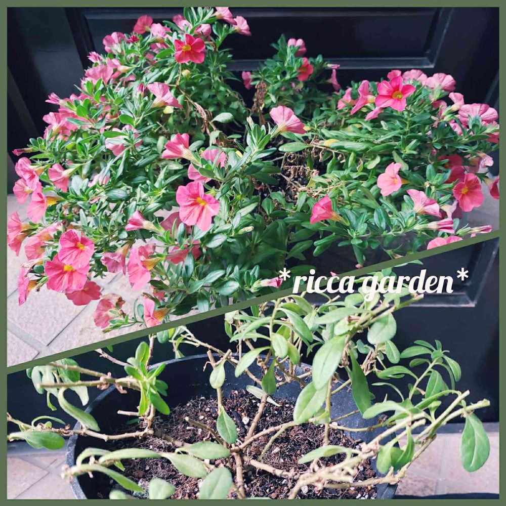 少し前の事になりましたが、フォロワー様の投稿を参考にカリブラコア(PWスーパーベル リッチ サンライズ)の切り戻しをしました。アンバサダーでいただいた苗です。