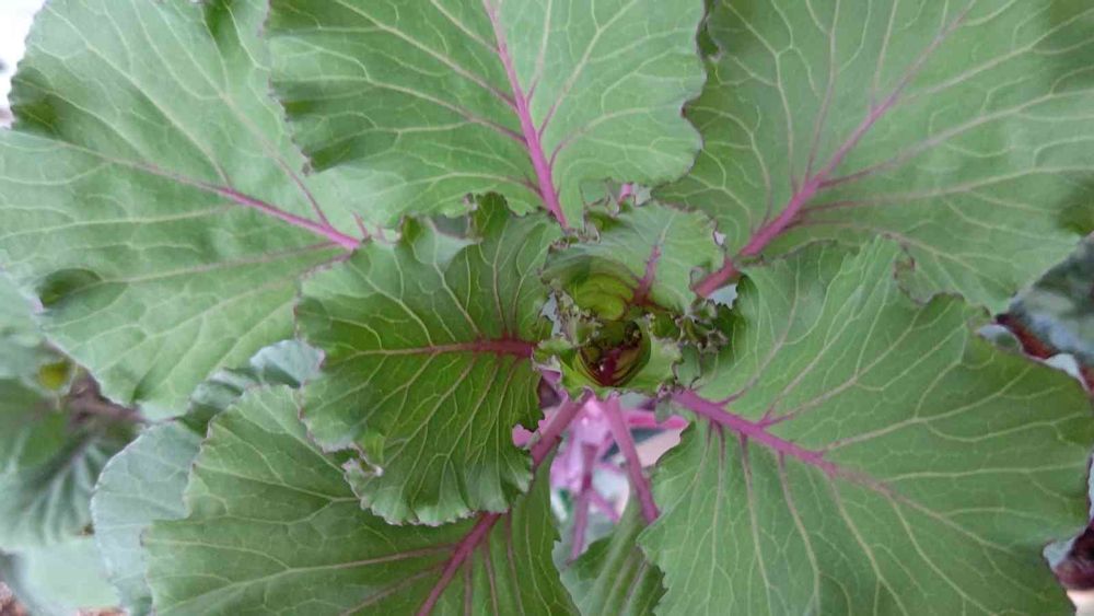 とうがたって、花が咲いてカット✂️して🤭取りあえずポイポイ鉢に植えてたら、茎の付いたキャベツが育ってます😁お正月、玄関に飾れる位の姿に・・・なりますように❣️
