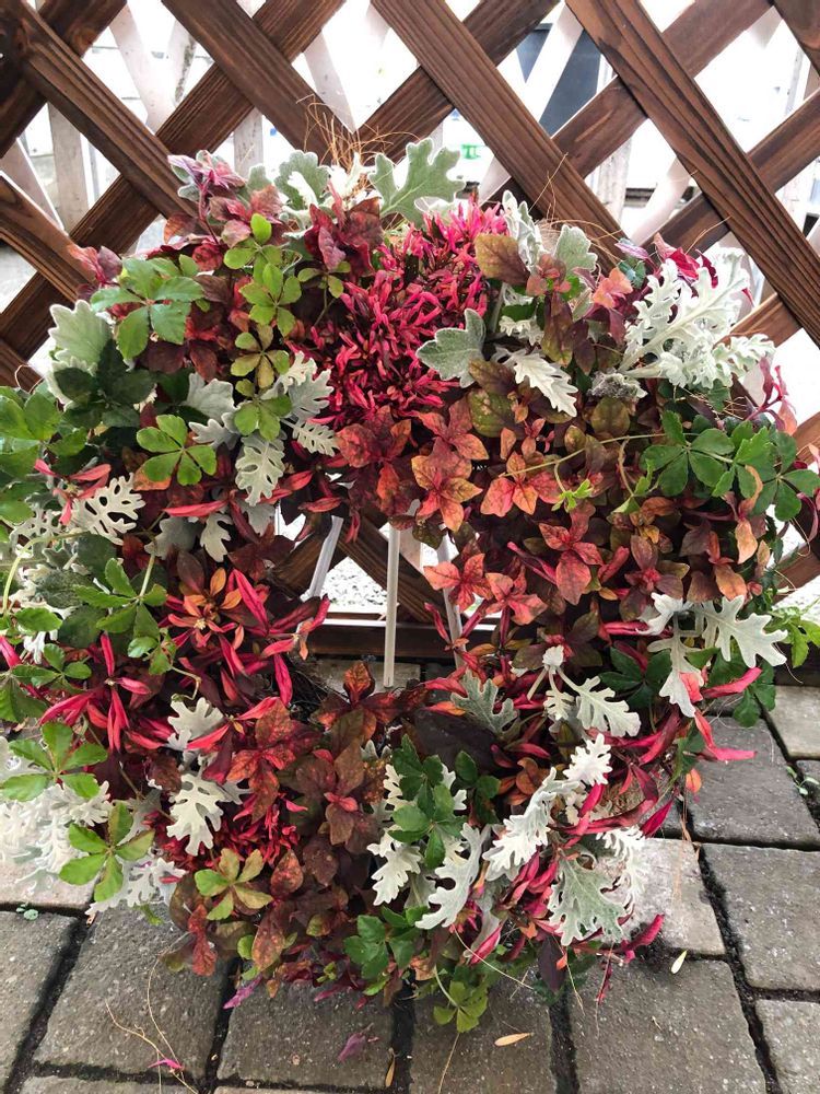 リーフだけでもこんなにカラフルで素敵なリースが出来るんですね🍃🍂🌿🍁🌱