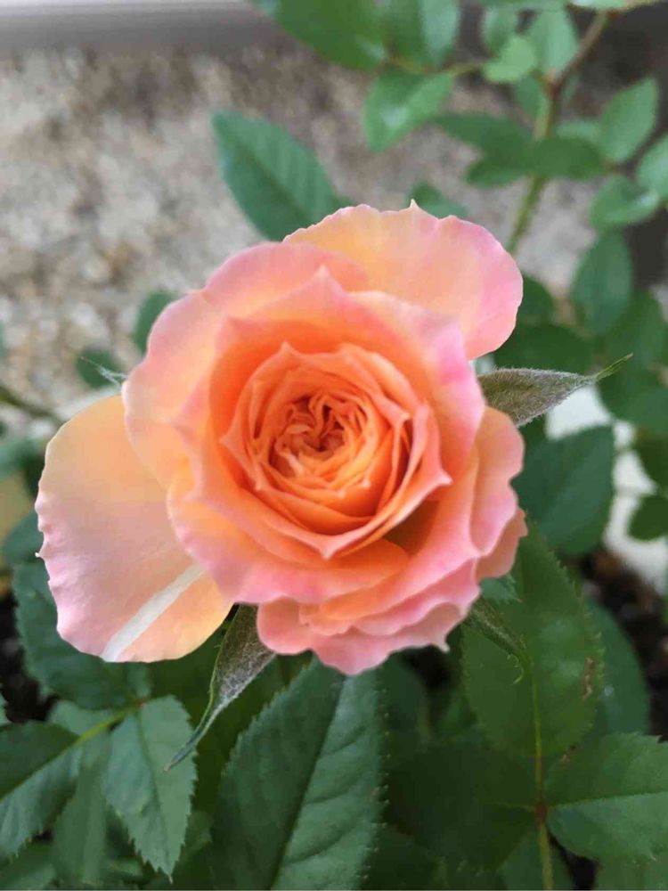 このミニ薔薇、姿がミニっぽくなくて可愛いんです🥰アプリコットの薔薇、良いですよね😆✨