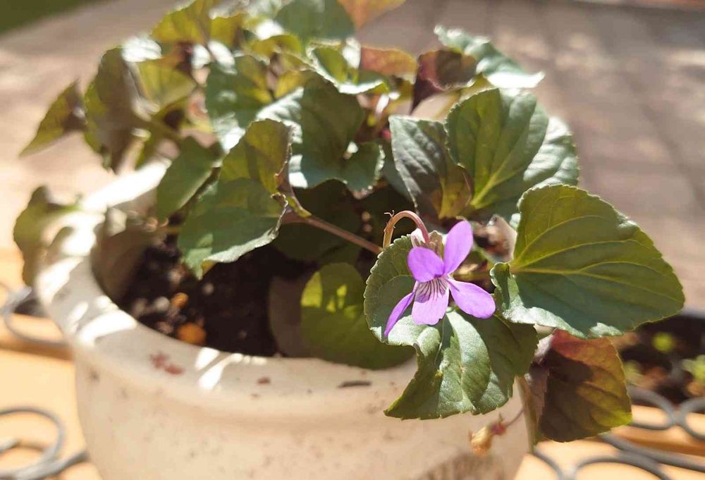 うちの黒葉スミレさん、皇帝ダリアのでっかい🌿葉の影になりまだ花が咲かないわ😅