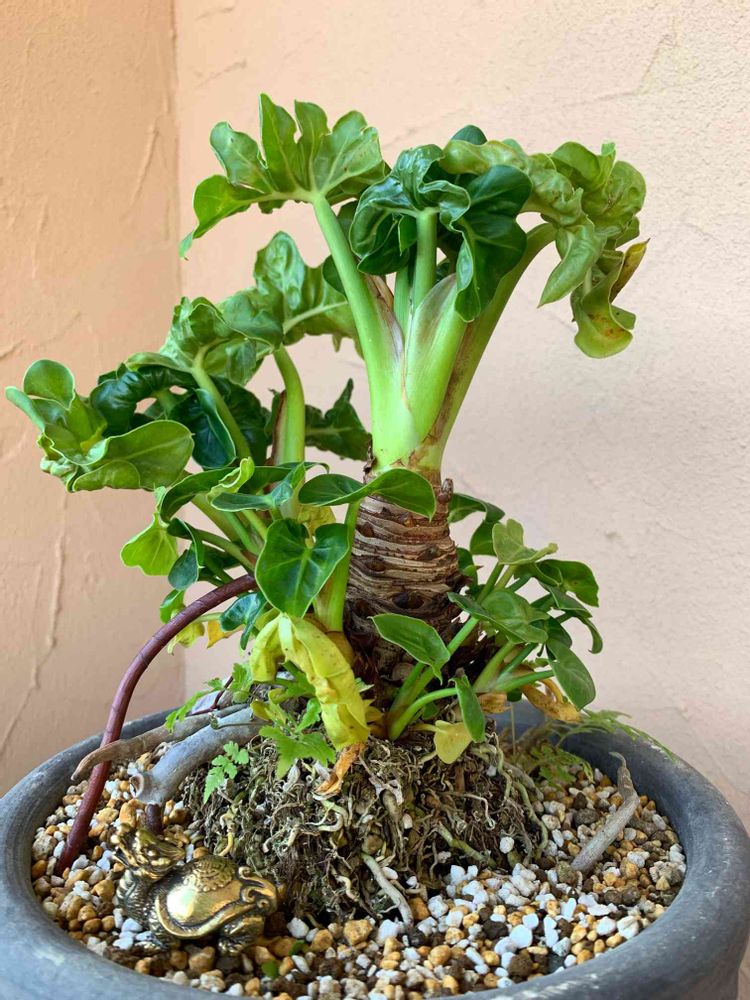 大きい葉が出て鋸歯状になったら フィロデンドロン セロームかも。セロームも小株のうちは丸い葉なので、成長してから調べると分かり易いかもしれません。