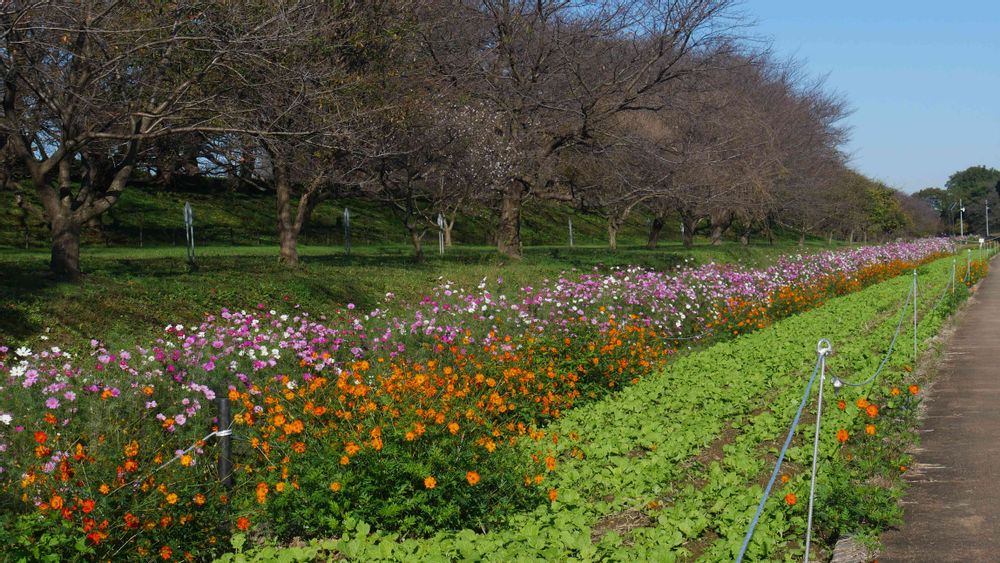 権現堂堤のコスモスです。早咲きの名の花が植えてあります。河津桜の頃に咲くと思います。コスモスの動画を作成しました。ぜひ、ご覧ください。