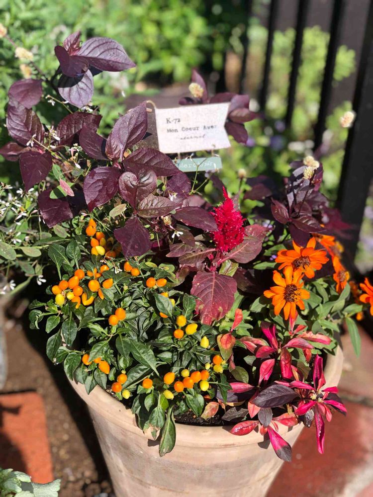 観賞用とうがらしやアキランサスが色鮮やかです😊