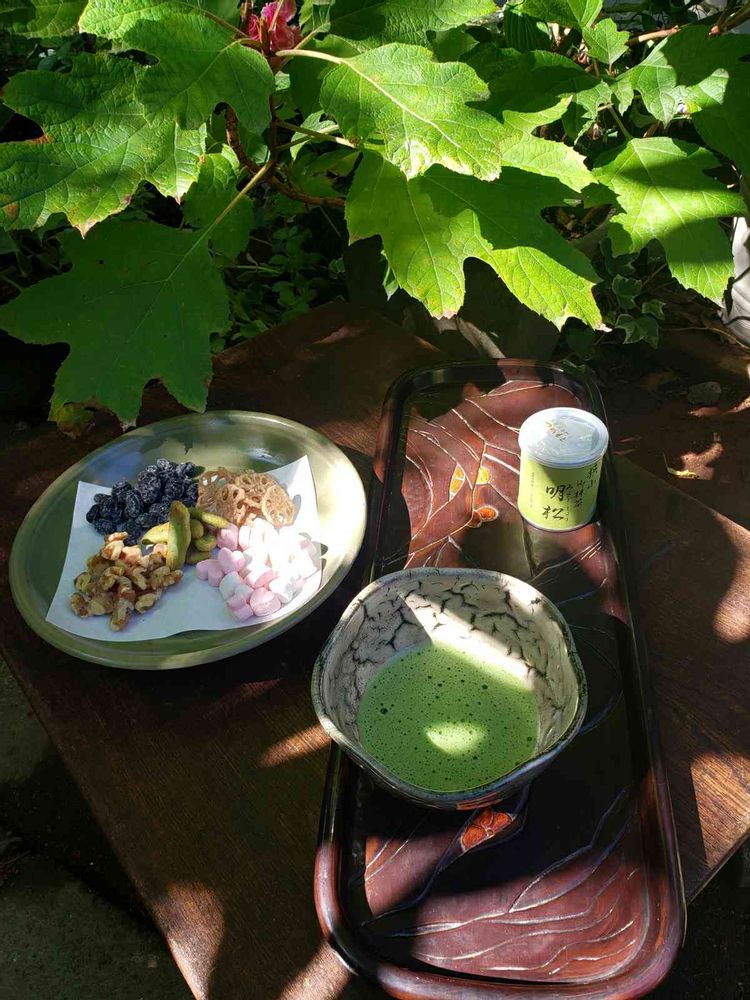お菓子を頂き、抹茶もズズッと…柏葉紫陽花のお部屋で楽しい時間を頂けました。