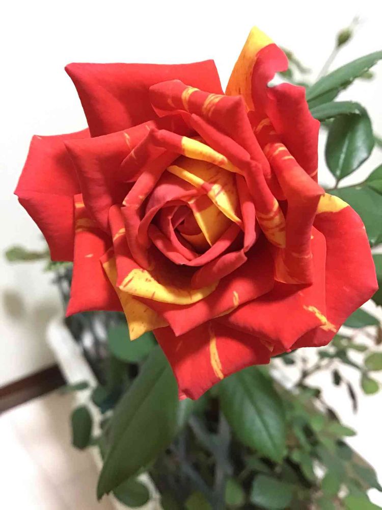 このミニバラ🌹は、赤色と黄色の絞り模様なんです♡