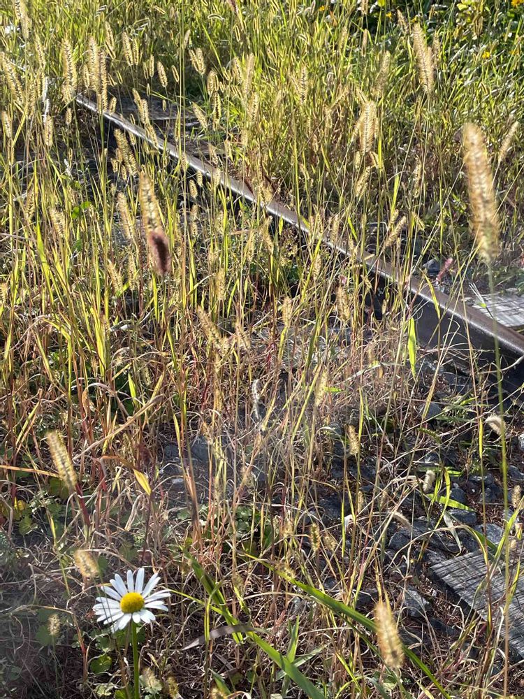 JR小海線で電車を待っている時に撮った風景です。手前の花が何なのか分からないのですが😅