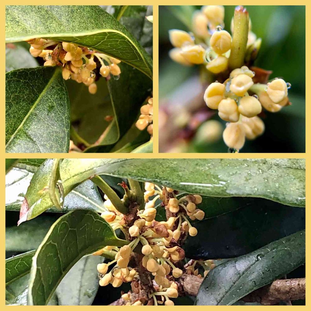 これはお向かいさんの、多分ですが銀木犀だと思います。もう少しして咲いたらまた投稿させて頂きますね🌼🍃家のは、相変わらず葉っぱばかり生い茂っていますが😅