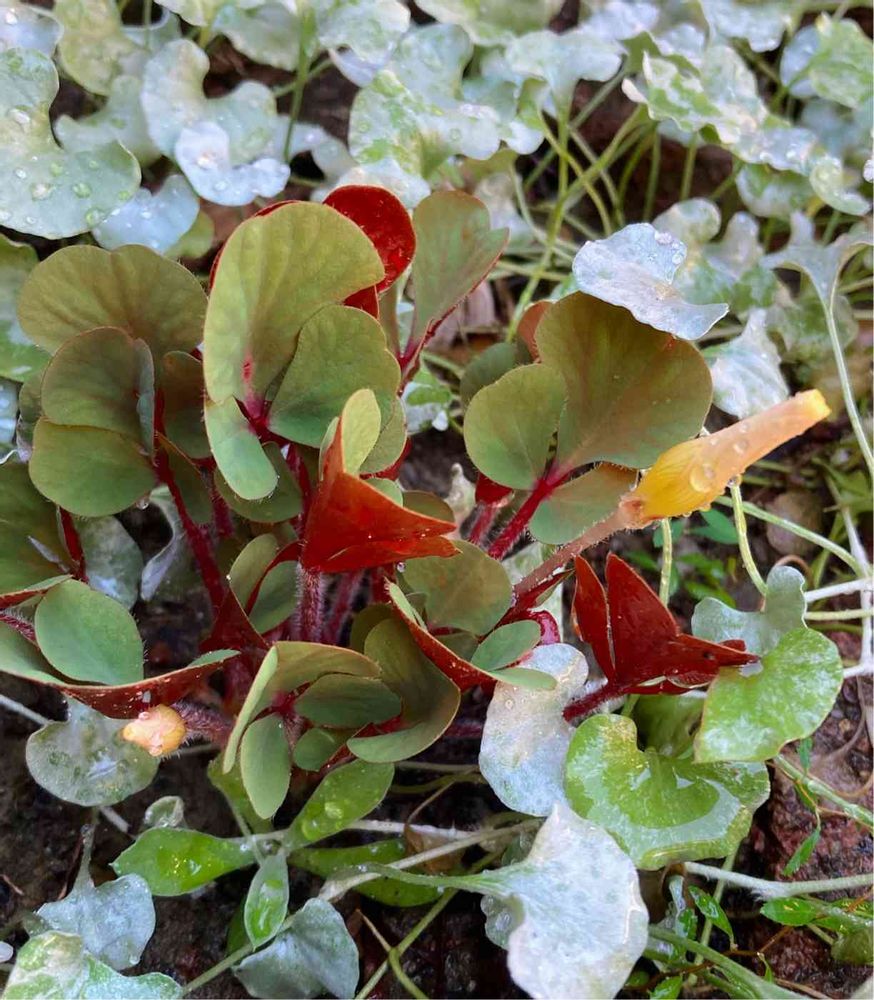 去年、秋冬にガーデニングを始め手当たり次第に買っては庭のあちこちに植えていたひとつ。オキザリス、葉の裏が赤くて花は黄色でかわいいんです❤️出てきていたのを昨日発見❗️😂😆忘れてました。宿根草っていいですね〜。よく行く花屋さんでたまたま見つけたんですが希少な種類ってネットに書いてありました😲