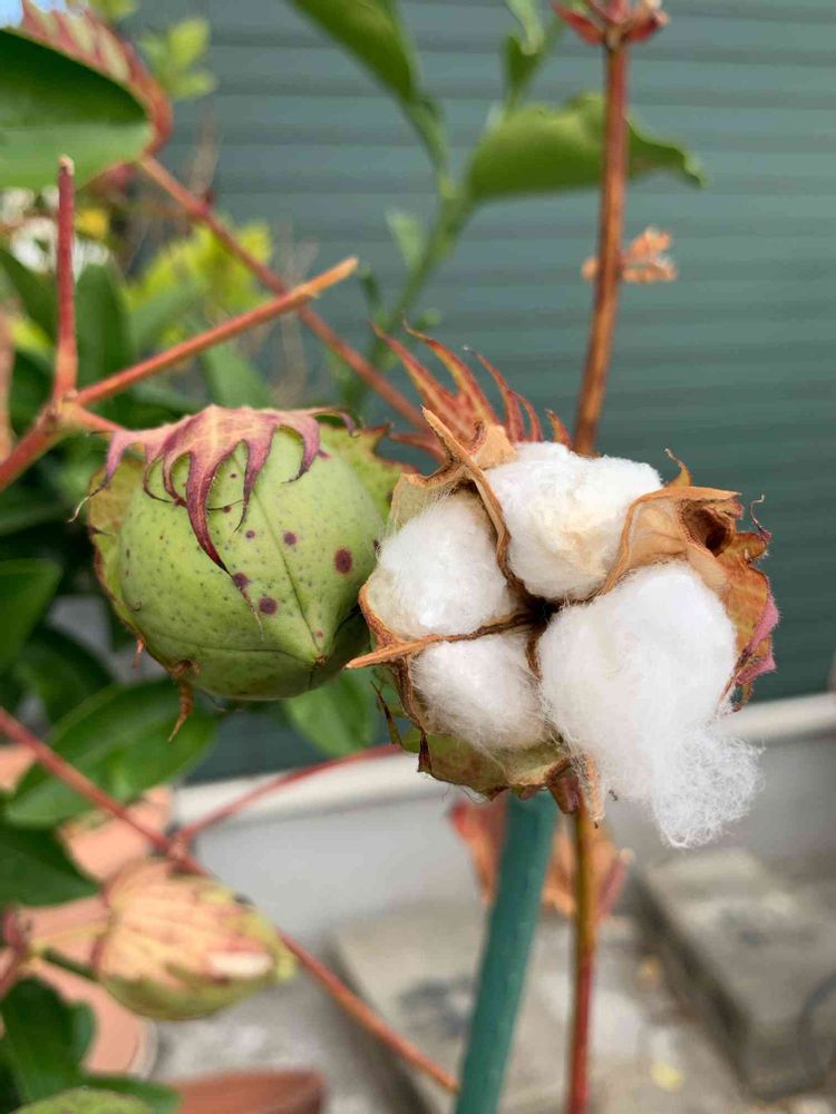 "綿"の花は"ムクゲ"のような花🌼ですが、結実して弾けると中から白い綿毛が現れて、花のように見えるのでこの実を"綿花"と呼ぶそうです。