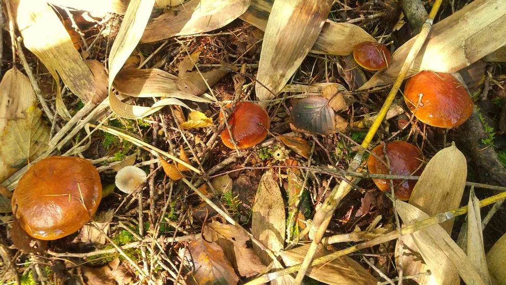 一番左にあるのは、他のハナイグチとは、ちょっと違いますよね。カサの上からの写真だけだと、何とも言えませんが、左のはヌメリイグチかもしれないし、ハナイグチかもしれないし。キノコって難しいけど面白いね🤗🍄