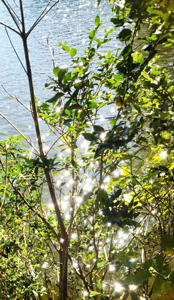 湖面でキラキラと反射したお日さまの光が、