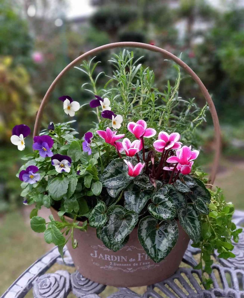 少しだけ残しガーデンシクラメンと2種類のビオラを入れてリメイクしました💜💕