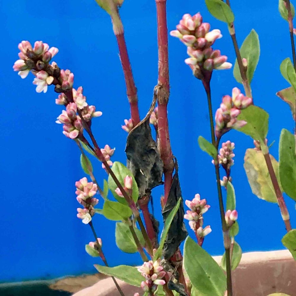 プランターに植えられ、さらに水色の大きな桶に、腰水?で。
