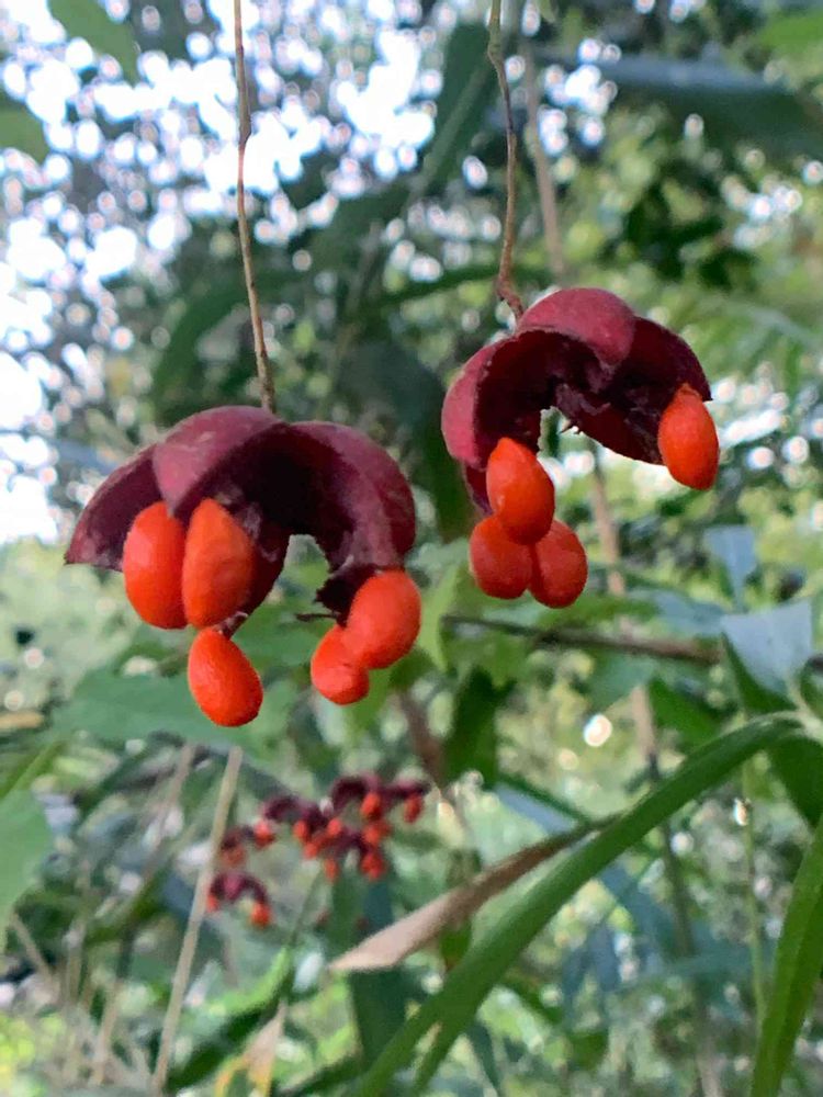 なんだとか…ニシキギもそういえば、こんな赤い実がついてたね🧣