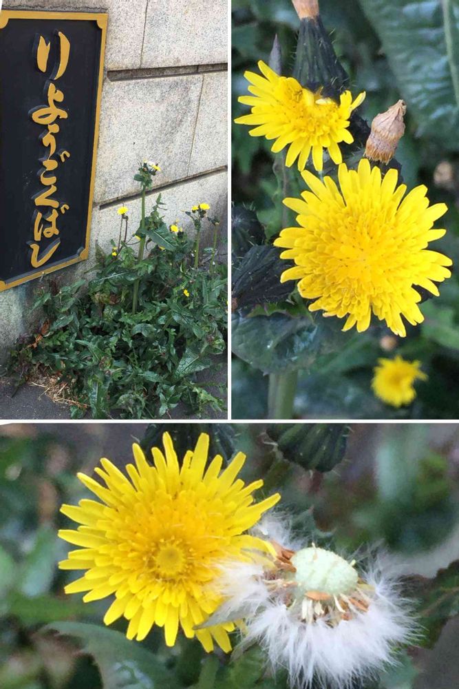 両国橋のたもとに元気な黄色の花!