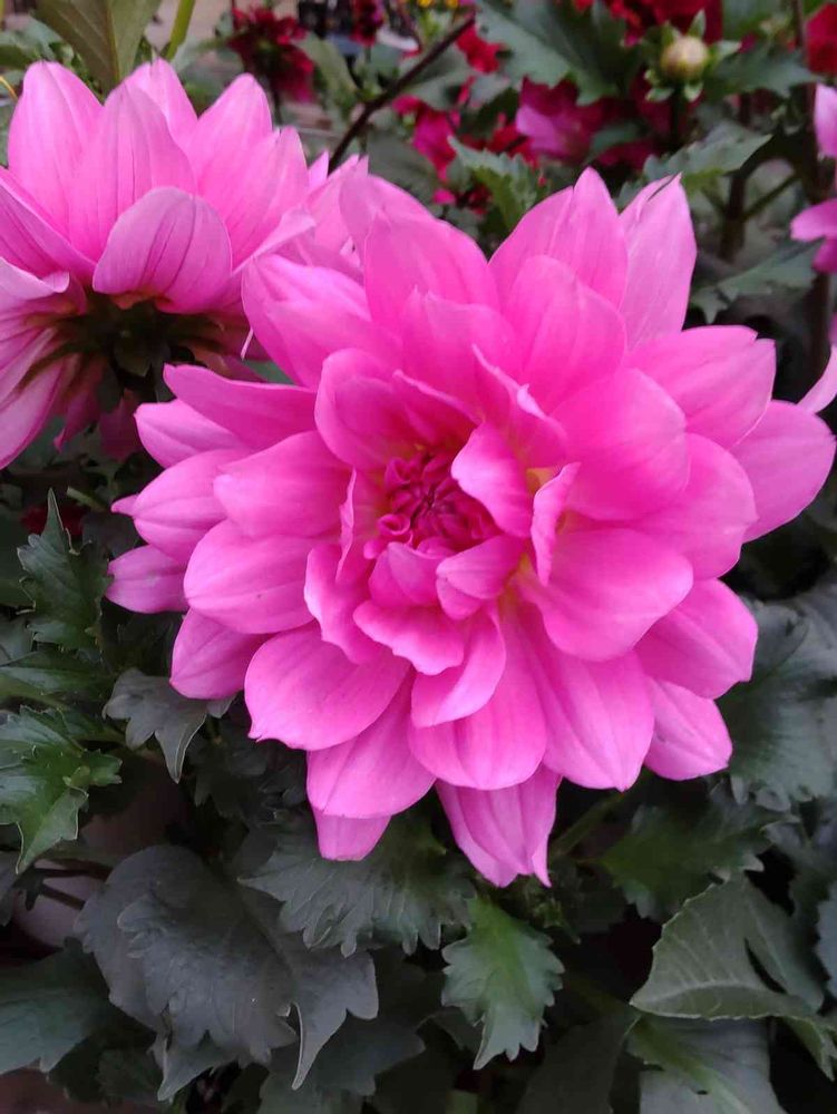 華やかなピンクの大輪咲きダリアです。ダリアはスウェーデンの植物園の園長ダールの名前に因んでいるとか…。