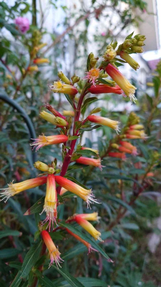 クフェアのピンク?と、クグツてみたら、可愛い小さな花で、クフェアも沢山種類あるのかな???全然顔が違ってた、、、今から咲いて冬越しは地上部枯れたような、、、1メートルの背高のコです💛🧡