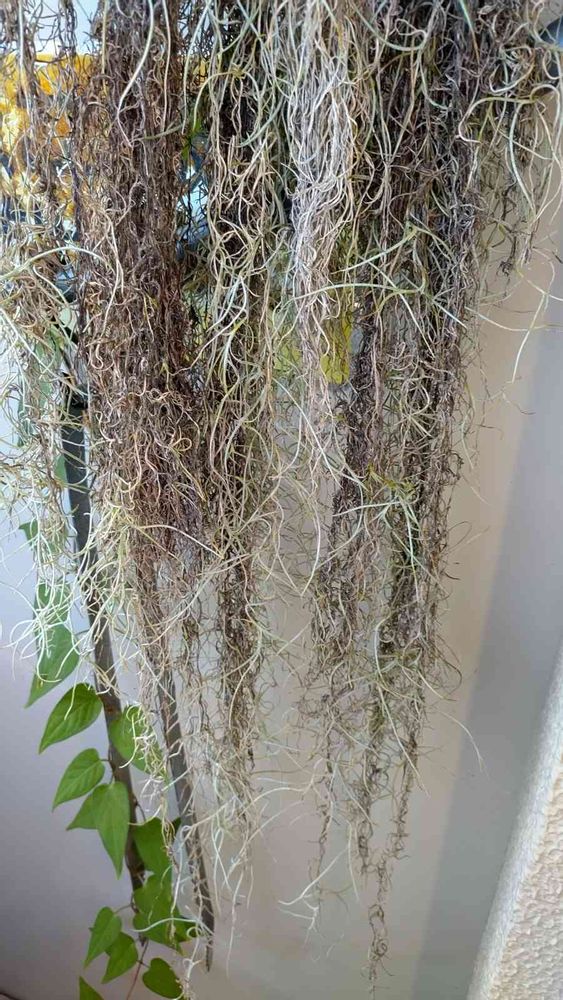 3ヶ月以上前に知り合いの所からやって来たティランジア ウスネオイデスさん…長くは育てていたみたいですが…ほぼ枯れ枯れの状態でやって来ましたが根気良くケアをしたら少しずつ復活の兆しが見えて来ました。