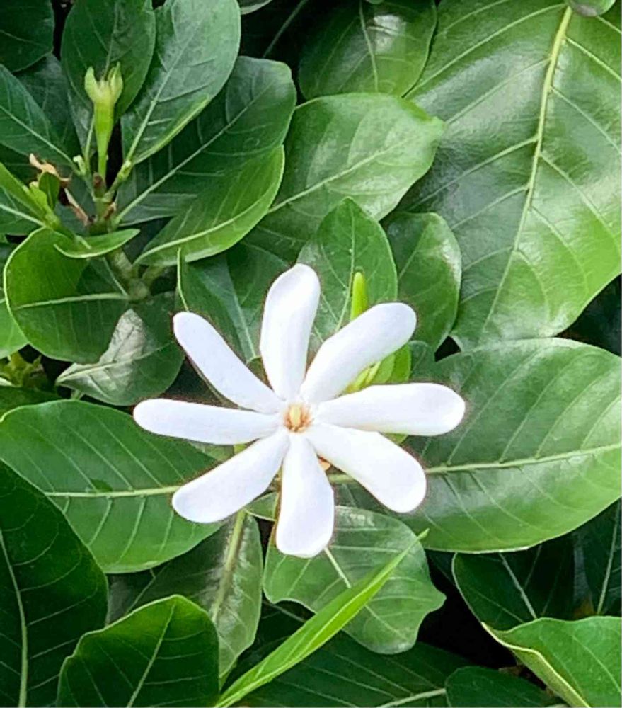 昔、"花びら8枚のティアレ見つけると、良いことがある"って聞いたけど…今まで出会えなくて、今年は朝散歩であっさり見つかりました💕