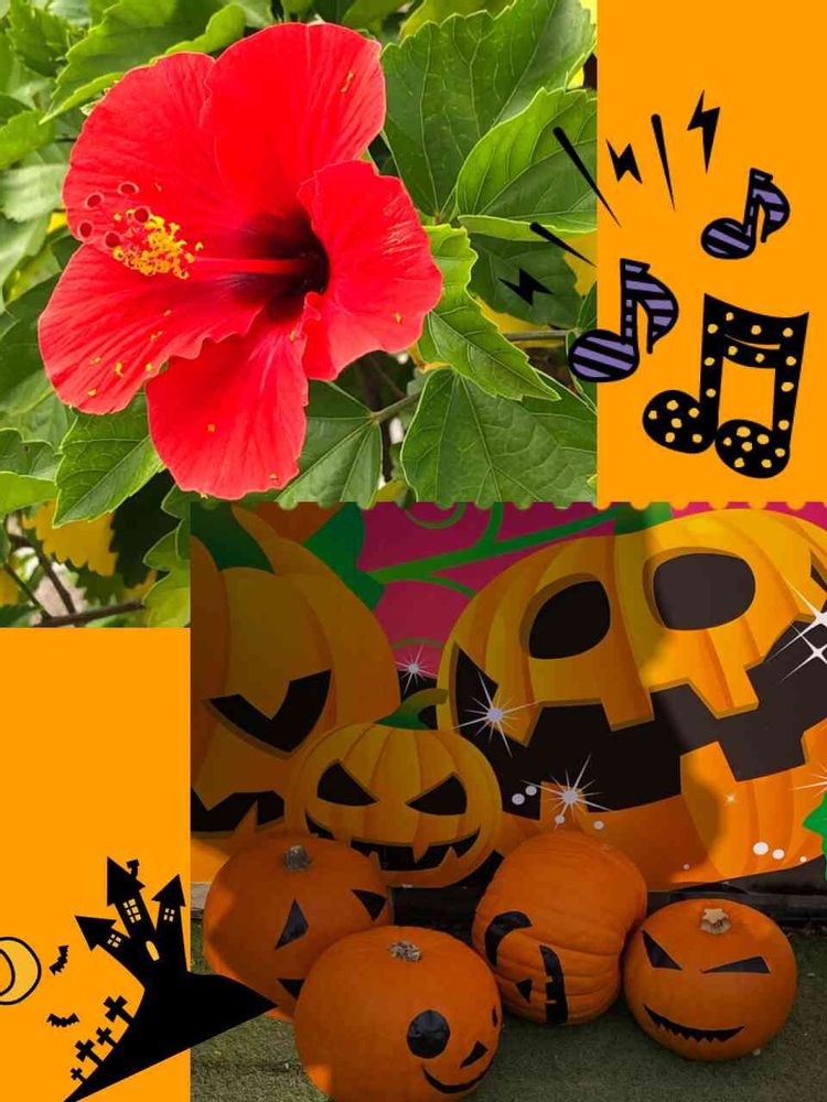 ハロウィン🎃のディスプレイにハイビスカス🌺素敵だね