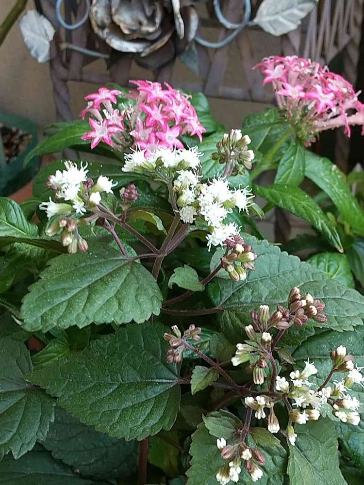 シックな銅葉が気に入って、夏にペンタスと寄せ植えにしたユーパトリウム チョコラータです🌿🌿🌿