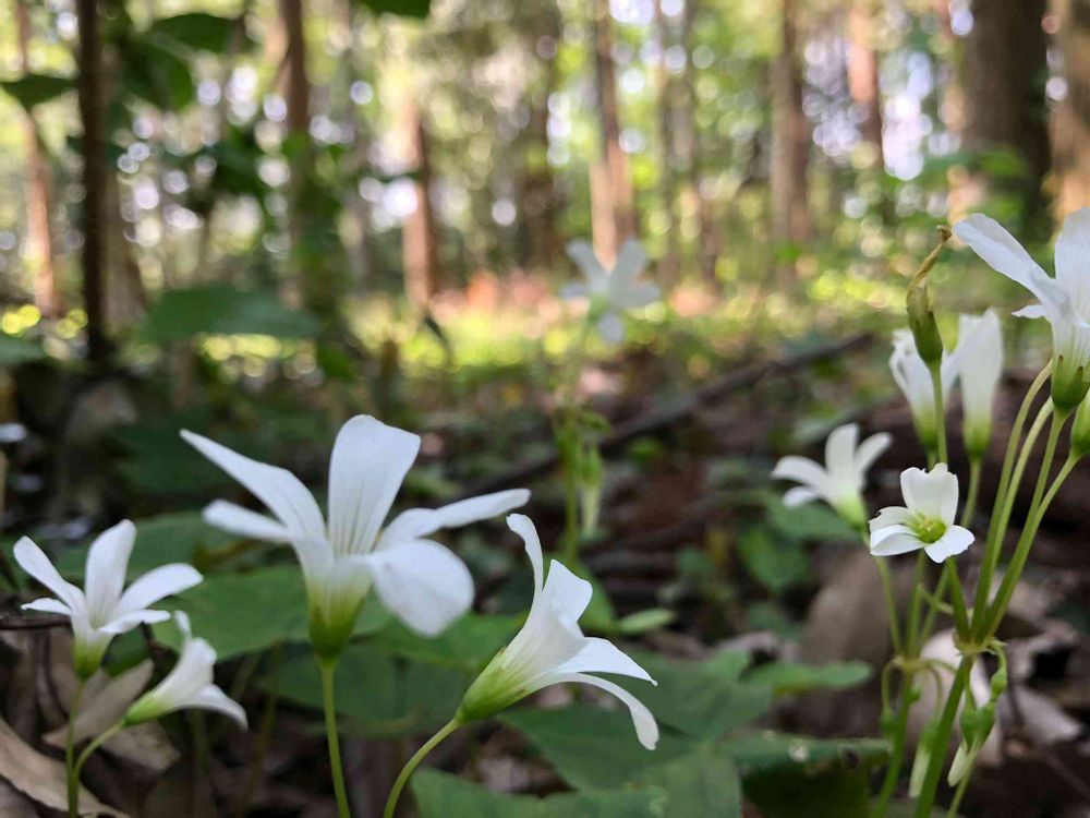 以前森の中で咲いていた白いオキザリス🤍🤍三角の葉っぱが特徴的💕