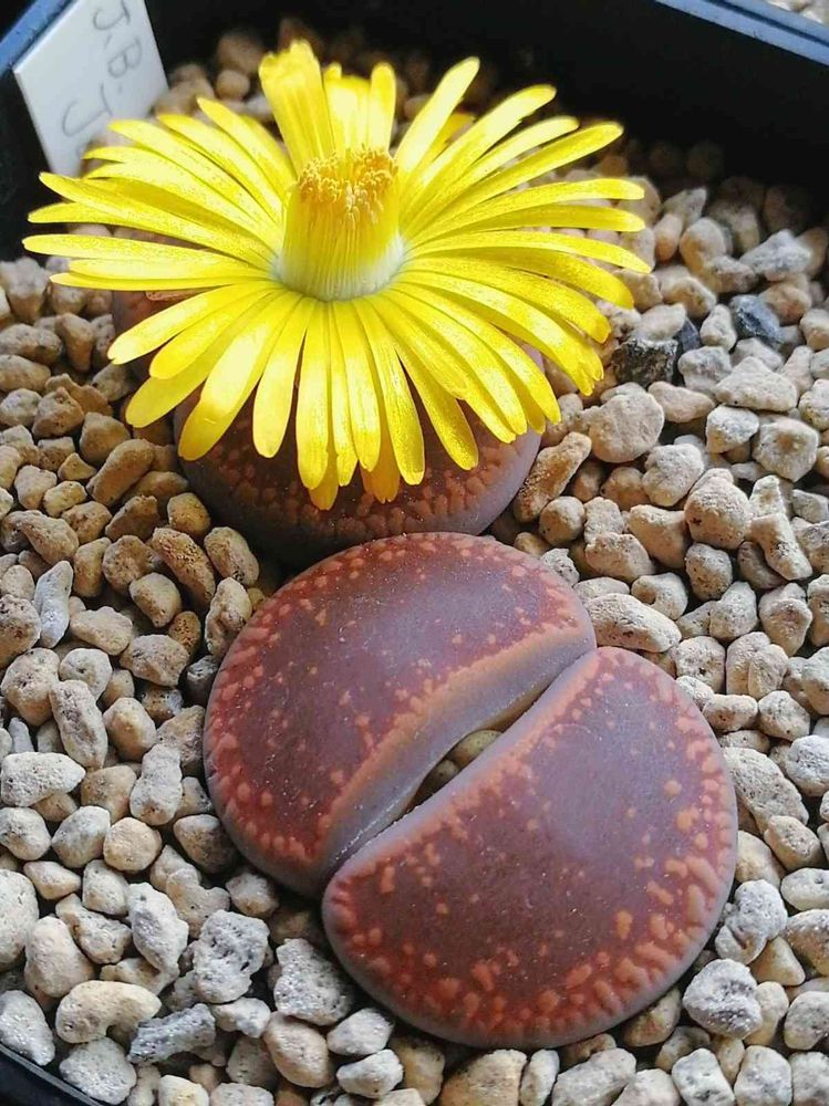 あとリトープスのジャスピライトが開花しましたが、ようやく花芽を上げ始めたお隣さんのため、ちょんぱして花粉だけもらっておきました(´•ω•`)スマヌ