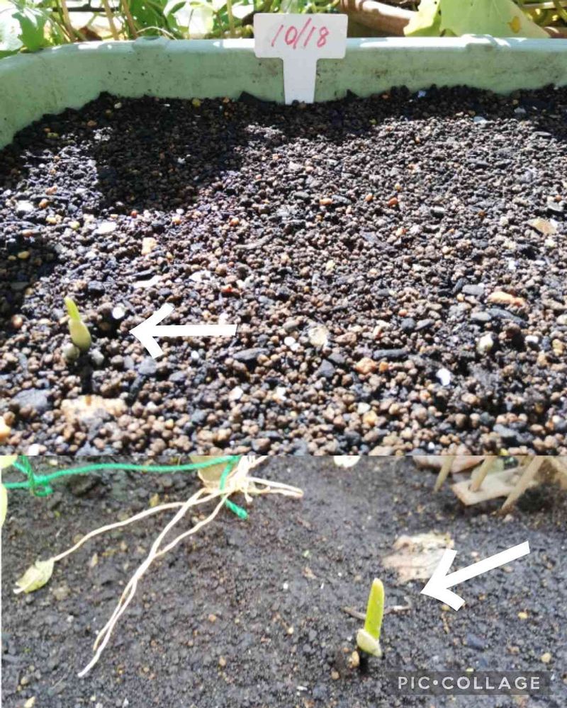 10日前に植えた プランターと畑の にんにくの 発芽を確認🎵