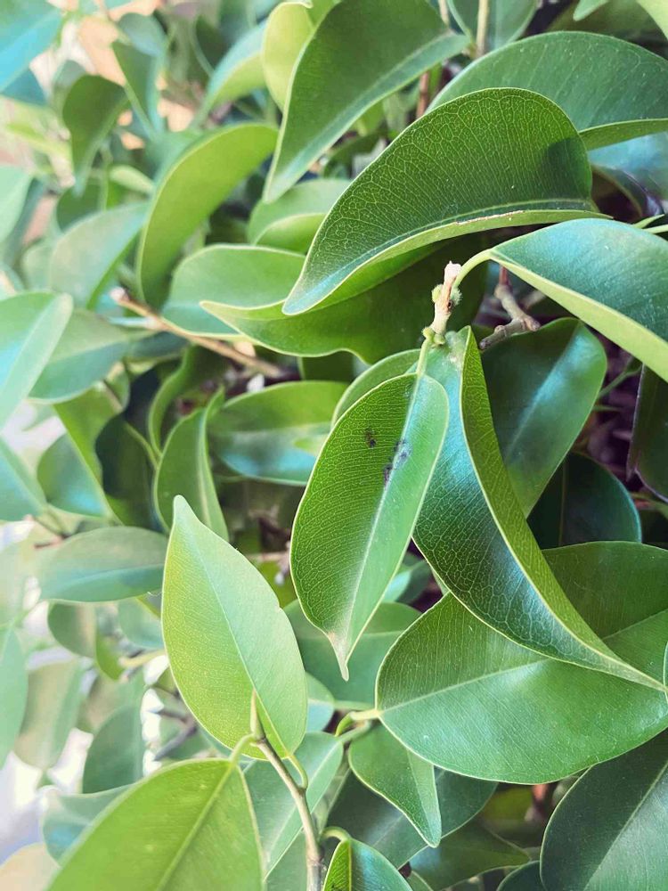 ベンジャミンちゃん、全体的に葉っぱ綺麗で、ベトベトもしてないのですが、所々にこう言った黒い汚れがついています…