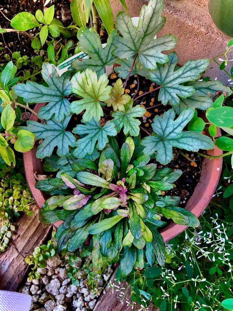 ヒューケレラフレッシュグリーンとアジュガデキシーチップがいい葉色でうっとり見つめちゃいます♡