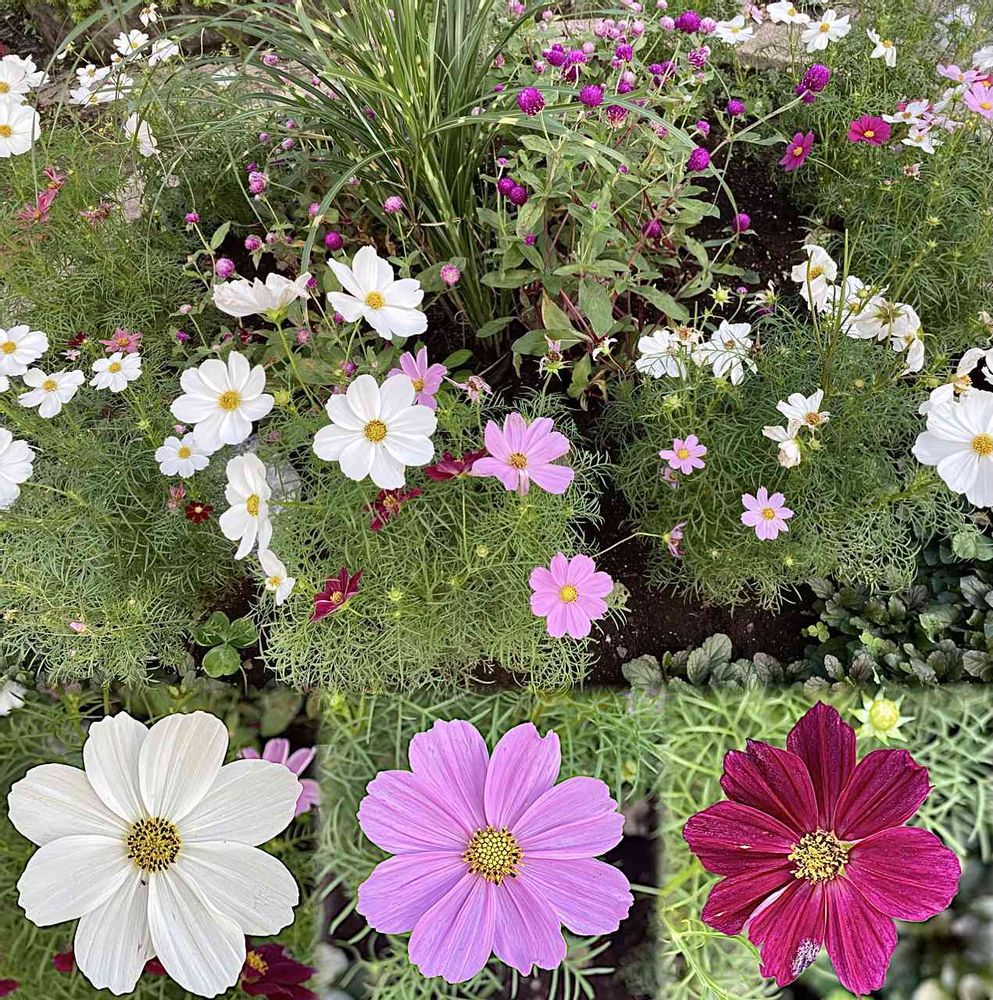 その鉢の中は、先月に観たあの濃いピンクの草花を中心にしながら、その周囲に、鮮やかにもその落ち着いた8弁の花びらを、整然としてつけた3つの色彩を異にする(白、ピンク、赤紫)草花が、それをぐるっと囲むようにしていた。