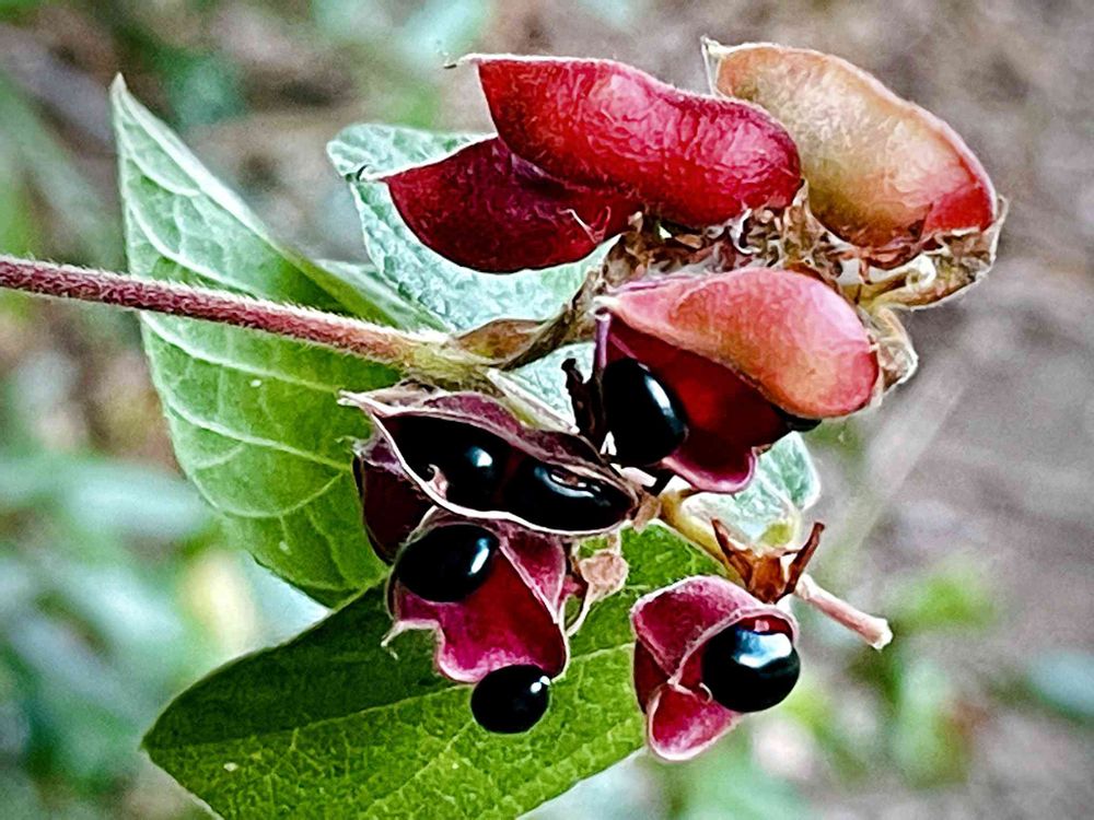 こちらは、痰切豆の黒色で美しい光沢のある実です。夏から晩秋にかけ沢山の花や実をつけていきます。豆果(さや)は未熟な時は淡緑黄色、熟すにつれ鮮やかな朱色に色づき種子になる。種は落ちず、鳥に食べられる事によって散布されます📖花言葉は、甘い乙女心🐈♪🎶💖