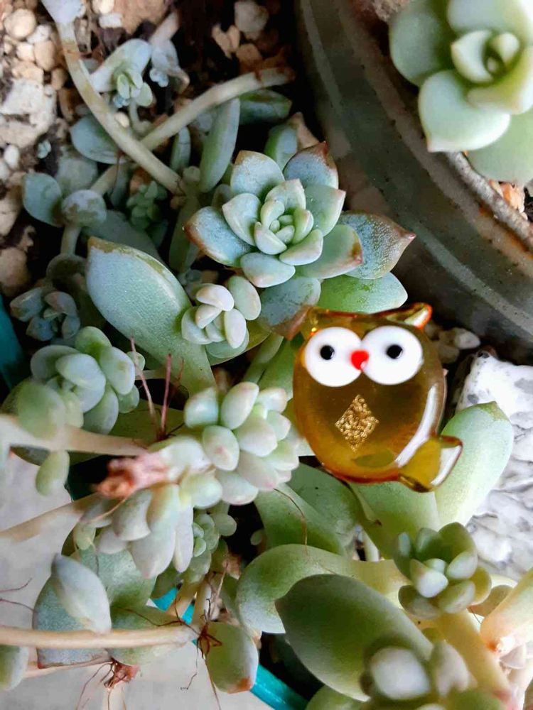 白牡丹の葉挿しとプロリフェラもガラス細工のミニふくろう🦉です♪