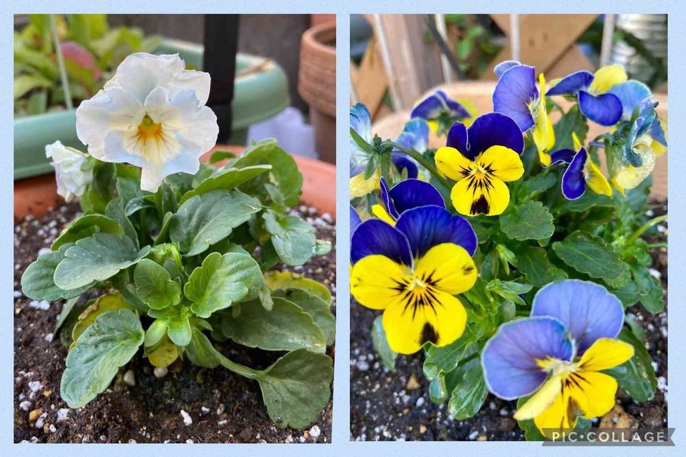 パンジーとビオラを購入しました😍濃いバイカラーと水色のパンジーです🌸