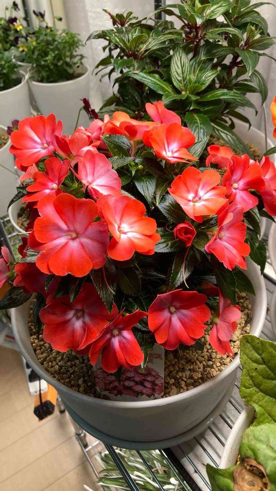 こんにちは😊真っ赤なインパチェンスが満開で可愛いですね❣️上手に育てられますね、私も癒されました💓