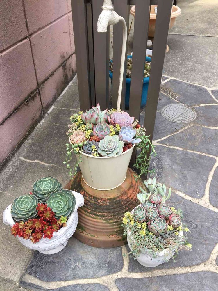 せっかく玄関先のを頑張って寄せ植えて