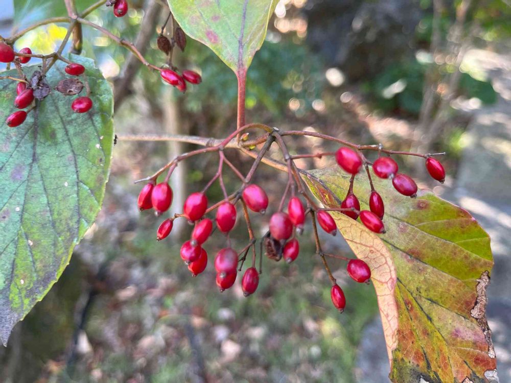 お散歩してたら見つけました。赤いかわいい実がなった木です。