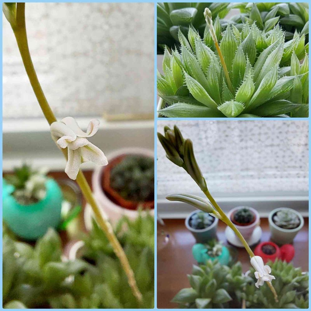 うちにあるハオルチア系は葉っぱの形は違っても お花はみんなpicのような白くてユニークな形です♡