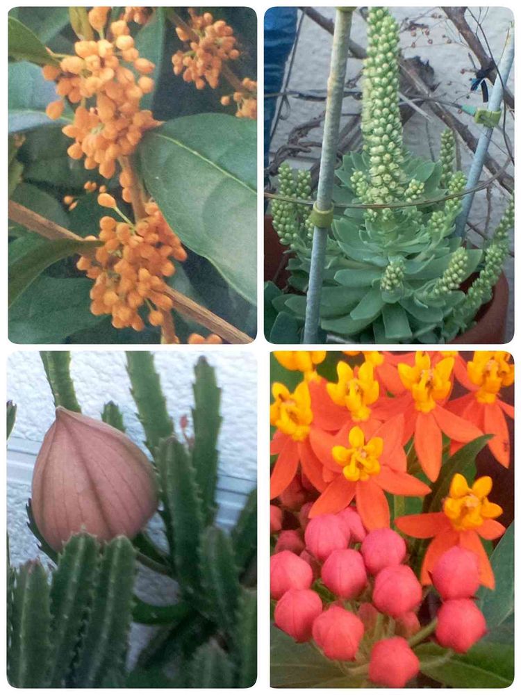 何か解らない🌵ユ~フォルビアにピンクのボンボリみたいな~蕾~? 初めて見た~明日咲くかな~? 今年初めての金木犀のお花💐開花かな~?