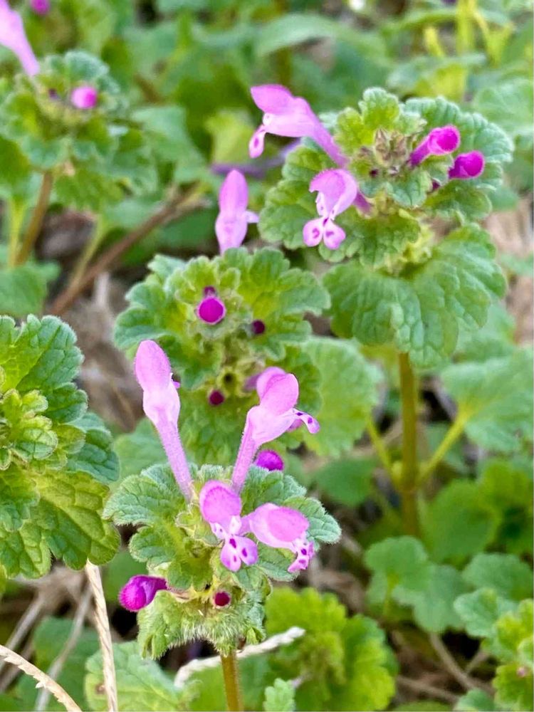 夕方、散歩に行くと、用水の土手に、なんと😳ホトケノザが咲いていました。