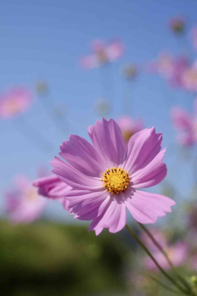 コスモスがいっぱい道を