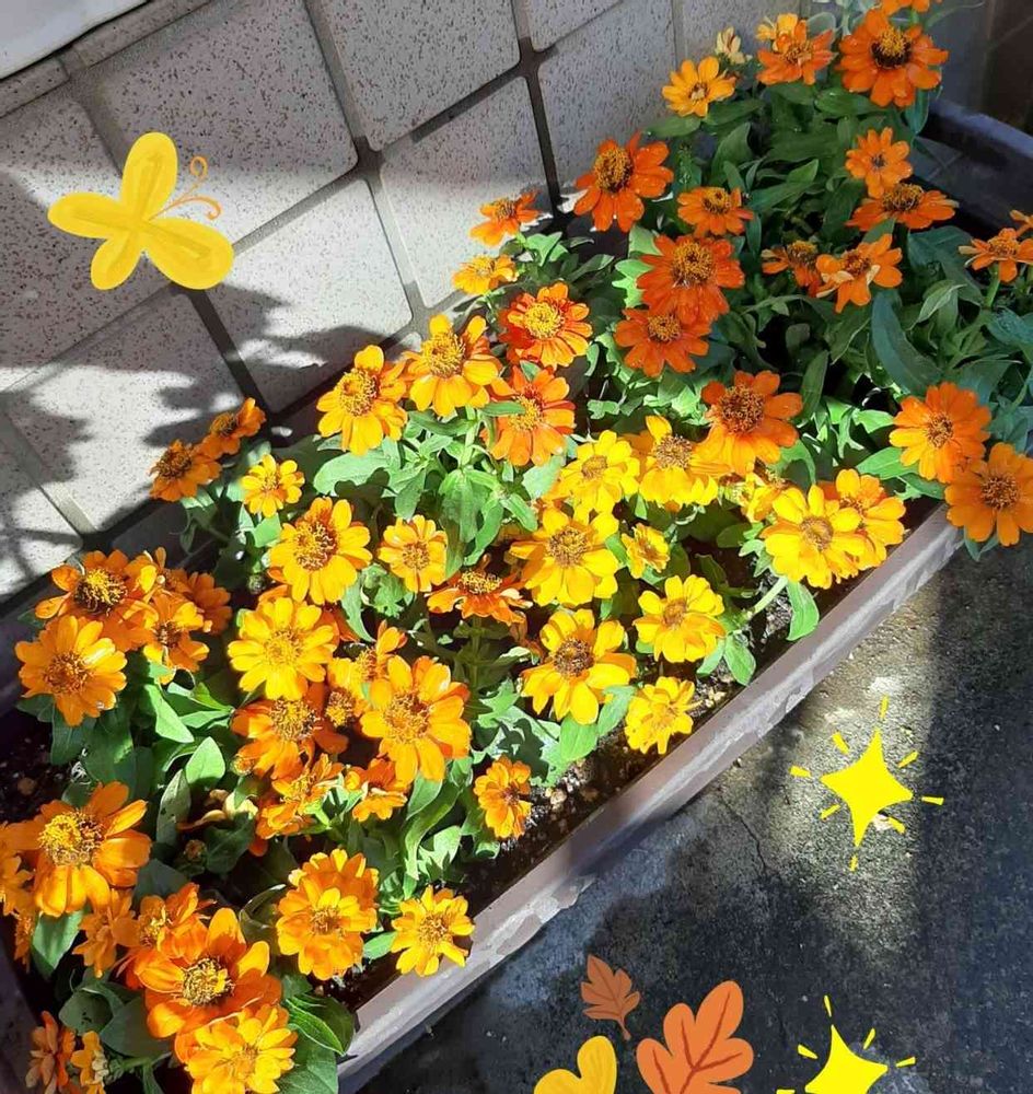 ハロウィンカラーのジニアさん達💛🧡❤️元気を貰えますね😄