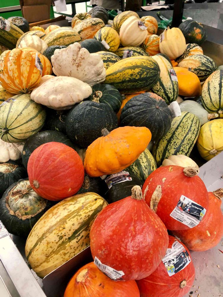 スーパーの野菜売り場に積まれたカボチャ達🎃