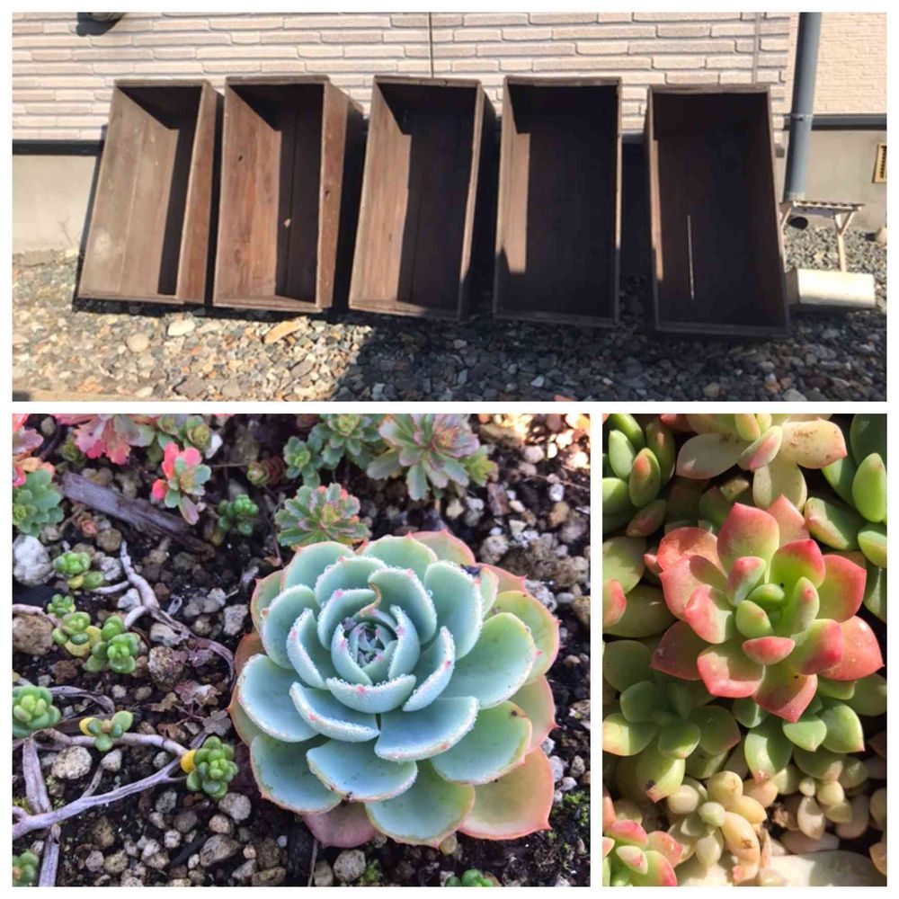 朝早くけら多肉棚のリンゴ箱をお掃除してお片づけ。。。