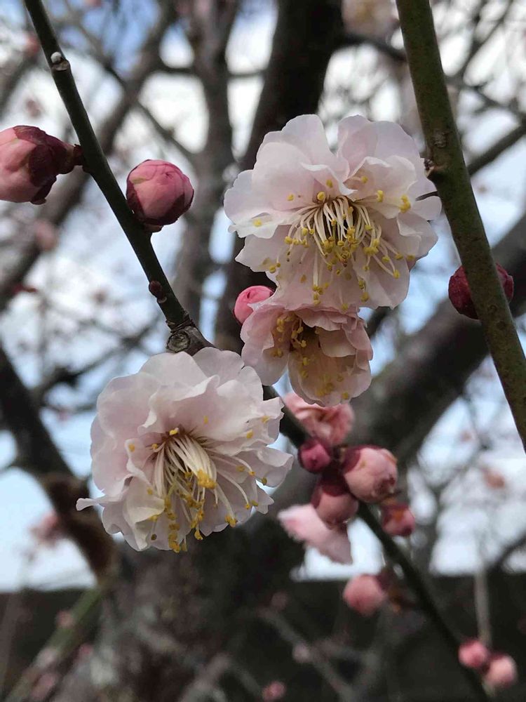 梅の花が咲き始めました(^O^)強風の中、可愛く花を咲かせてくれてありがとう😊