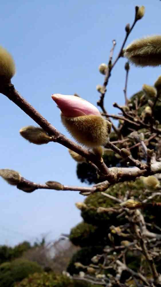 コブシが帽子を脱だしてるなんて…春ですね♡