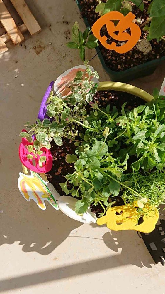 (斑入オレガノ、かすみ草ジプシー、ビオラらららとるるる、パル名前が可愛い🥰)春にはもう少し成長してますはずです。