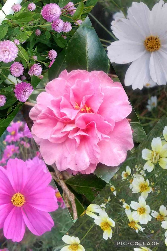 山茶花、コスモス、ウインターコスモス、千日紅😃💕💐