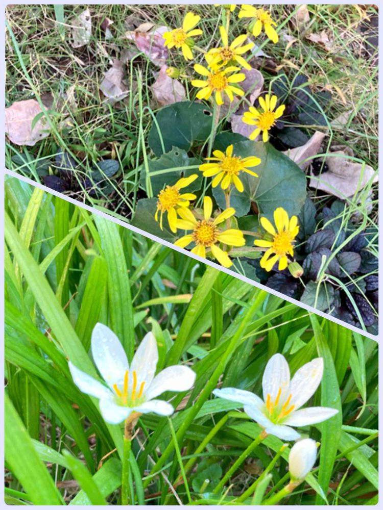 モンタナB Bさんの小さな庭,ツワブキのお花,玉すだれ(ゼフィランサス)の投稿画像